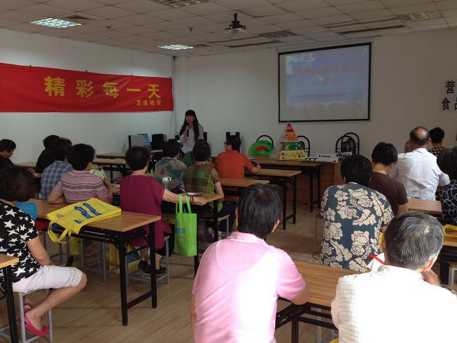 为进一步提高居民的生活质量,2014年6月20日下午,奥体社区联合建邺区疾病预防控制中心为社区居民作了一次“慢性病与健康的生活方式”的讲座。专家首先介绍了什么是慢性病,慢性病得病的机理以及预防慢性病的重要性;接着又介绍了健康的四大基石,什么是营养和营养的核心理论;最后介绍了如何合理膳食,吃出健康人生守则的理论。通过这次讲座,居民们不仅深刻的了解到了合理膳食,坚持适量运动保持良好心态的重要性,而且还学会了对自己身体体质体重是否达标的简答自测。这次讲座丰不仅富了居民们的健康生活知识,同时也是建设健康家庭、和谐家庭的有力保证。