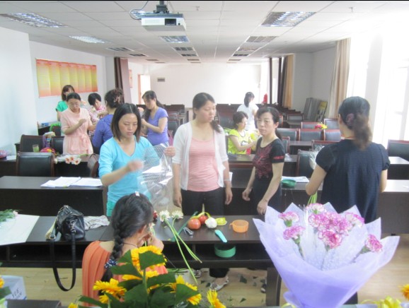 莲花北苑社区开设的插花班于2014年6月21日下午考试正式结业。经过十余天的专业教学与培训,插花班的学员们相互交流、学习与分享,相处融恰,收获不少。