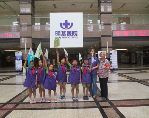 6月30日,中胜社区组织建邺实小的雏鹰假日小队参观明基医院国医堂。国医即是中医,指中国传统医学,是研究人体生理、病理以及疾病的诊断和防治等的一门学科。国医堂的医生们向学生们解释了何为中医以及基本的就诊流程。同学们提了很多有趣的问题,如医生工作时为什么要穿白大褂,医院的标志为什么是红色的十字,中药为什么那么苦,在医生的解释下同学们豁然开朗,也深切地感受到中医的博大精深奥妙非凡。