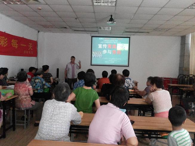 为做好迎青奥“百场万人”文明礼仪巡回宣讲活动,建邺区组建了由区委党校、区关工委、区教育局、区社科联专家教授以及离退休老同志组成的区文明礼仪巡回宣讲团。2014年7月4日上午,宣讲团成员江家福老师来到奥体社区,为社区居民开展一场别开生面的宣传文明礼仪、社会主义核心价值观、青奥知识等志愿宣讲。作为迎青奥文明素质提升系列活动之一,“迎青奥、讲文明、树新风”文明礼仪巡回宣讲活动,将进一步激发广大市民“文明迎青奥,当好东道主”的主人翁意识,并通过志愿者的示范带动,引导更多的市民群众关心青奥、支持青奥、参与青奥、奉献青奥。