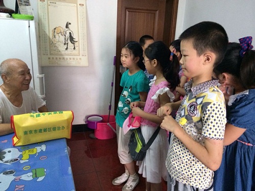 2014年7月8日上午,桃园居社区开展暑期青少年慰问辖区高龄老党员活动。社区工作人员带领小朋友到高龄党员家中拜访,听老党员也要讲故事。在老党员家中,小朋友们亲切地向爷爷奶奶问好,还关切地询问爷爷奶奶的身体情况,并认真聆听爷爷讲述他们年轻时候入党的故事。爷爷的小故事让小朋友们感受到爷爷年轻时候对党的满腔豪情,了解的党的光辉历程,了解了革命精神,也切实感受到革命精神、民族精神的伟大力量,激发起大家的爱党热情,并纷纷表示要好好学习,向爷爷一样为党为祖国做贡献,做新一代的接班人。
