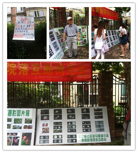 2014年7月1日下午,庆七一社区组织居民在社区开展昙花摄影展,由居民提供一系列的昙花从变态茎出苞到昙花一现的全部图片,社区美丽院落副理事长张老师全程讲解,从如何培植、浇水时间、昙花的食用等方面一一解说。社区工作人员在各园区主要出入口张贴关于观看昙花的观看通知。