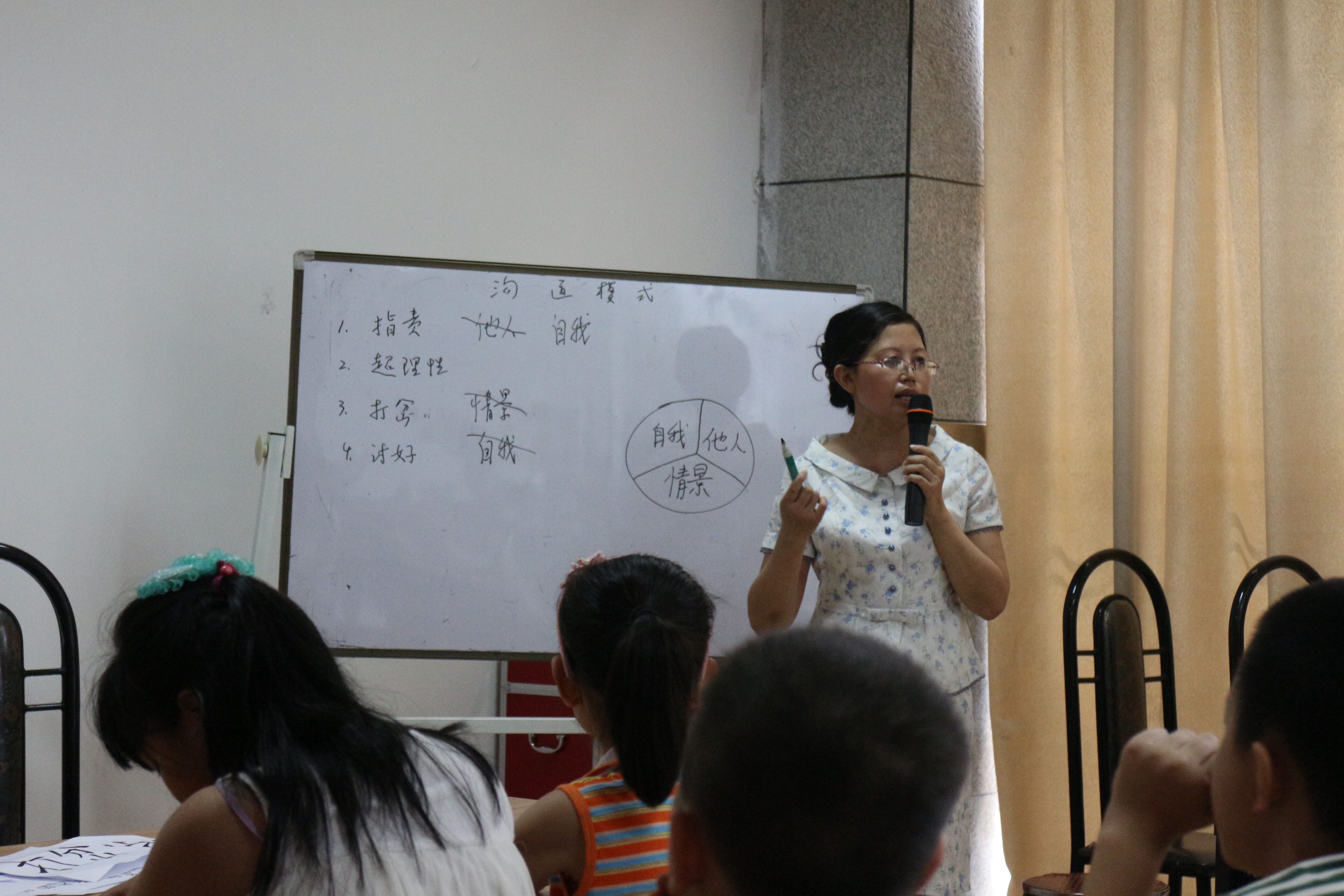 7月10日下午,奥体社区的大教室里座无虚席。教室被奥体社区、月安社区和仁河社区的同学及家长挤得满满当当,教室的后排甚至连教室的门口都站满了人。这里正在进行“未成年人心理健康宣讲活动”,由从新加坡回国的教育工作者吕老师讲授《沟通模式与转化》。