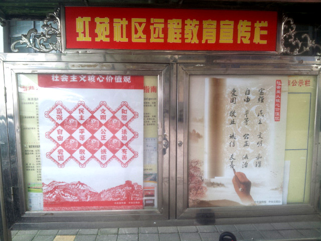 为了使社会主义核心价值观宣传教育走进群众、为人所知,近日,虹苑社区利用小区宣传橱窗、电子屏等媒介在辖区宣传弘扬社会主义核心价值观的基本内容,张贴社会主义核心价值观公益广告37幅,让社会主义核心价值观更加深入人心。此外,社区党委结合群众路线教育实践活动,组织党员开展学习社会主义核心价值观内涵的专题交流会,要求党员发挥模范带头作用,营造和谐、文明的社区氛围。