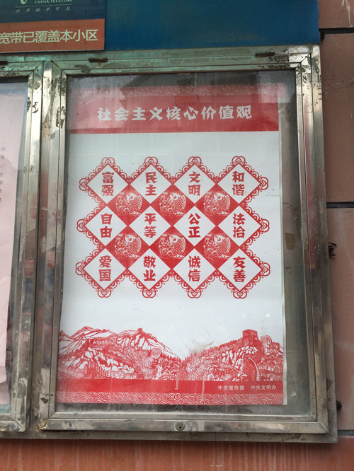 宣传海报,向辖区居民强调践行社会主义核心价值观的重要性。