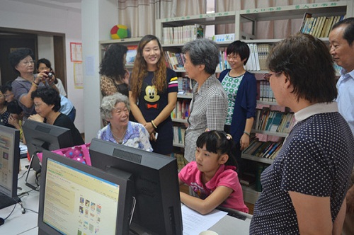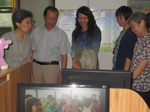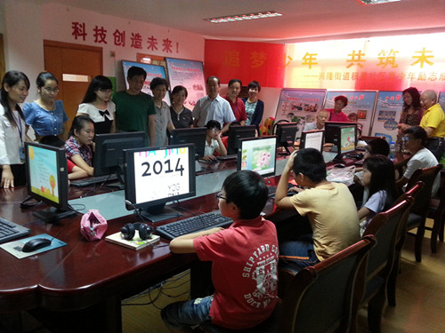 刘国华副主任等一行,观看了社区电子阅览室,对小朋友们亲手制作的青奥PPT非常感兴趣,给予极高评价。并亲切地同社区“五老”电脑学员亲切交谈,鼓励她们加强学习,丰富老年生活。在积善社区了解到南京大学志愿者,暑期从不间断的来社区辅导青少年们暑期学习和电脑知识很感动,并和她们亲切交谈,鼓励她们维持该项活动不仅对社区是好事,对自己将来踏入社会也是一个锻炼和促进。同时还参观看了社区关工委开展的活动展板,对社区暑期开展的 “2014年迎青奥 暑期青少年趣味运动会”、 “暑期励行学”、 “风筝专题月活动”、“老少同乐学电脑”、“民族团结心连心 青奥文化进军营”、“学校结对共建”等活动评价很有特色。