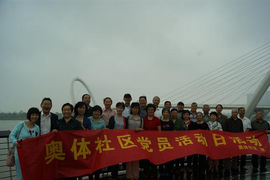2014年9月23日,奥体社区组织党员参观南京眼。“南京眼”是长江上首座观光步行桥,位于南京市建邺区,河西新城青奥轴线中轴,跨越南京夹江,起点位于河西青年文化体育公园内,终点在江心洲青年森林公园内。羽翼般斜拉的钢索振翅向上就像竖琴的琴弦,行人穿行其间犹如琴弦上跳跃的音符。虽然天公不作美,阴沉沉的天空不时还下着蒙蒙细雨,但也不能阻止党员们的热情。大家相互扶持,共同走过大桥,感受到桥下惊涛拍岸卷起千层浪的长江。大家都觉得心中豪情万丈,纷纷表示做为一名共产党员要时刻发挥出党员的先锋模范作用,为建设平安和谐社区、打造幸福家园做出努力。