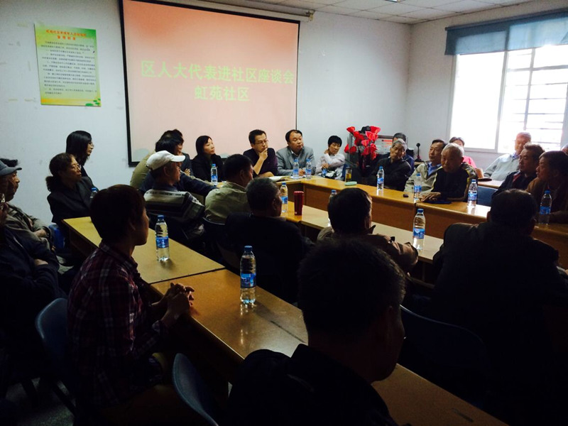10月15日下午,虞欣、唐锦飞、朱国美、金骥4名区人大代表来到虹苑社区,召开“人大代表进社区座谈会”,虹苑社区管理服务站站长焦瑞、选民代表等60人参加了会议。在这次座谈会中,选民们就物业管理、环境卫生、幸福都市圈建设、治安防范等日常生活中的实际问题提出9个问题,人大代表们认真听取,逐项记录,并承诺将积极向相关职能部门反映,尽快给居民一个确切的答复。此次座谈会以关注民生、反映民情、代表民言、维护民权为目的,进一步发挥了人大代表作用,加强了代表与选民的联系,让代表们更加了解社情民意,提高履职能力。