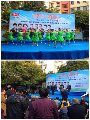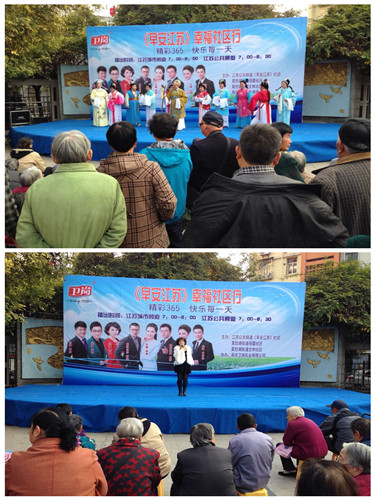11月21日下午,江苏电视台《早安江苏》幸福社区行活动走进蓓蕾社区。活动现场,辖区内南湖广场人山人海,掌声阵阵。社区文艺团队为大家带来了越剧《红楼裙钗游金陵》、女生独唱《明月千里》、广场舞《舞动中国》、男女对唱《敖包相会》等一系列精彩的节目。《早安江苏》栏目的主持人也深入基层,以“幸福”为主题,与居民朋友们积极展开互动。大伙纷纷表示此次活动不仅节目精彩,还提供了一个近距离接触自己喜爱的电视节目主持人的机会,希望以后多多举办。