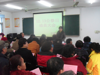 12月12日下午,艺苑社区召开了12月13日国家公祭日动员大会,会议由艺苑社区党委书记刘绪才、社区民警吕建孟、居委会主任王玲主持,社区楼栋长、平安志愿者以及社区全体工作人员参加此次会议。会上,刘书记首先介绍了国家公祭日的重要性以及区、街关于公祭日维稳工作会议精神。随后,吕警官提出几点要求:第一、前期网格员入户将致社区居民的一封信(关于公祭日严禁燃放烟花爆竹的通知)发放完毕,楼栋长要明确自身职责,确保公祭日当天楼栋内无燃放烟花爆竹现象;第二、平安志愿者12月13日要坚持在岗,确保各级网点的安全;第三、楼栋长要积极配合社区网格员,做好宣传等工作。会议最后,刘书记要求大家进一步提高对国家公祭日维稳工作的重视,确保公祭日期间辖区的安全稳定。