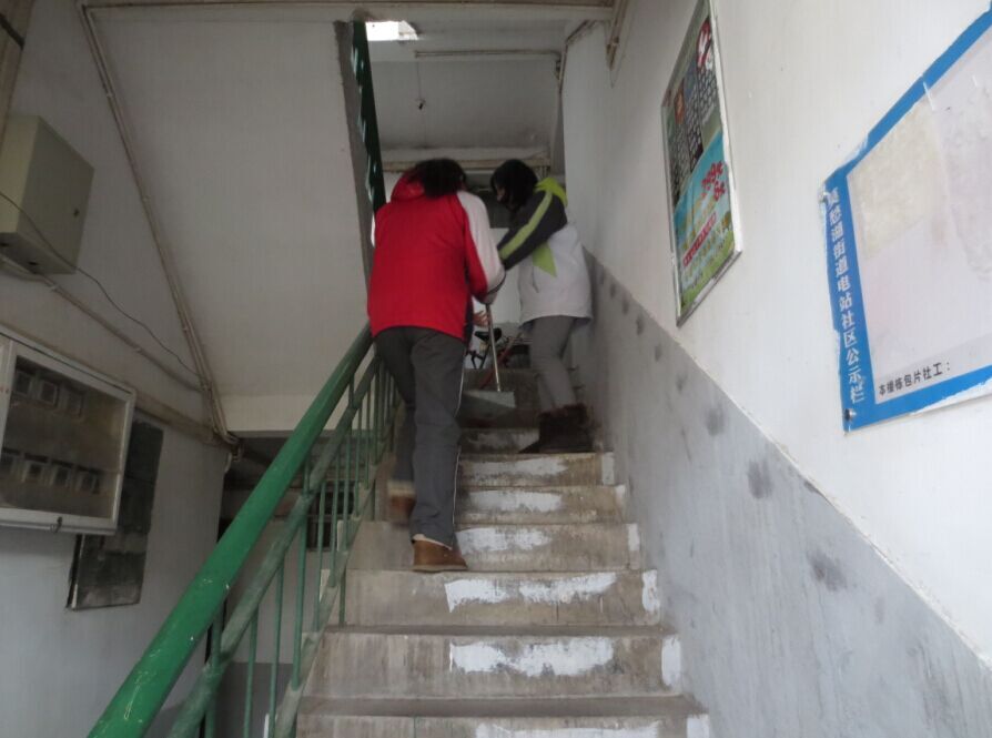 12月22日下午,长虹路社区组织南京财经学校的志愿者们来社区做志愿服务,为社区居民清扫楼道。南财的这些志愿者们每月都会到社区来开展志愿活动,她们以“奉献、友爱、团结、互助”为宗旨,以志愿服务的方式参与社会生活,奉献个人力量。