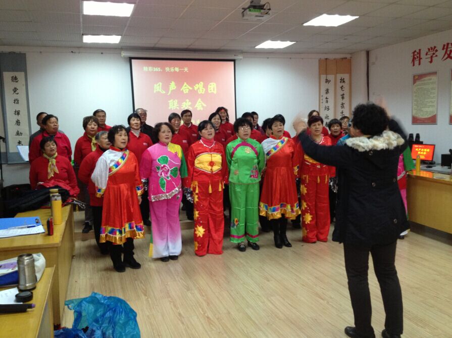 2014年12月30日下午,在凤栖苑社区大会议室传来阵阵歌声,这是凤栖苑社区居民自发组成的“凤声合唱团”正在开年终联欢会。