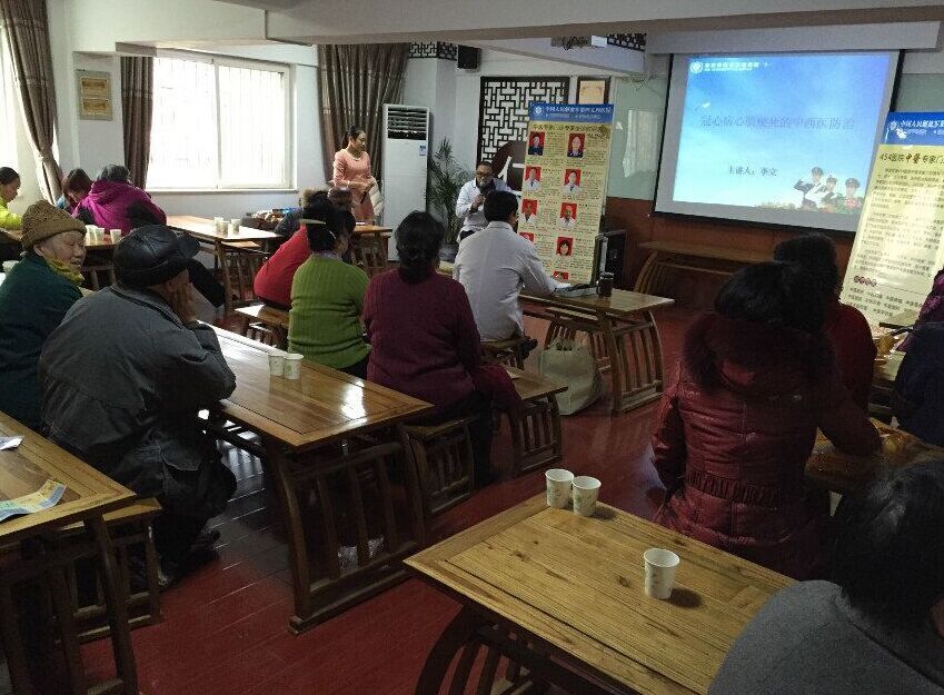 讲座中,李医生介绍了“什么是冠心病、如何预防冠心病和冠心病人的饮食”等有关常识。讲座结束,李医生现场给居民测量血压并回答了居民的提问,通过一个多小时讲座,居民们更多地了解了冠心病的相关常识。
