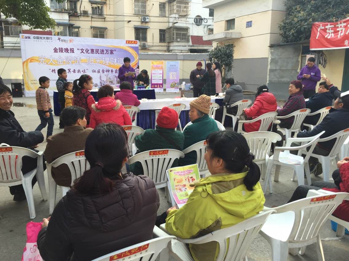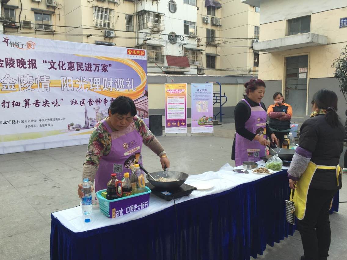 1月14日下午,由莫愁湖街道北圩路社区和光大银行南京分行主办,金陵晚报承办的金陵晚报“文化惠民进社区,精打细算舌尖味”社区食神争霸赛在社区广场举行。