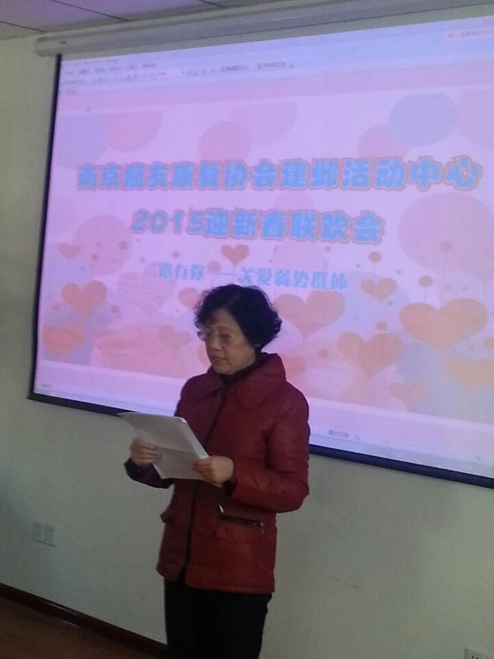 1月19日上午,汇丰项目癌友协会联合文体社区志愿者举办了一场2015迎新春联欢会。会上癌友协会向大家汇报了2014年工作,欢迎新的康复指导志愿者加入志愿者队伍。癌友们自编自排了歌舞,诗朗诵,大合唱等节目,大家互相交流康复经验,互相打气,抱团取暖,其乐融融。这次活动取得了圆满成功。
