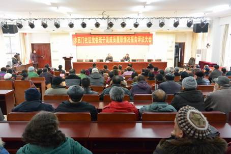1月24日上午,水西门社区在建邺区教师进修学校小礼堂举行了2014年度党委班子及成员履职情况报告评议大会。大会由莫愁湖街道周红玫副主任主持,80名社区党员和20名人大代表、社区居民代表参加了会议。