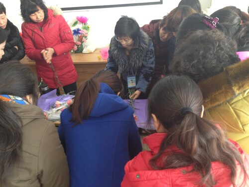 ,插花班的最后一节课。今天老师给学员们进行理论考前模拟和讲解实践考试的注意事项,学员们都在为明天的考试做好准备。