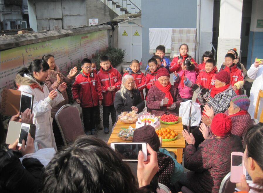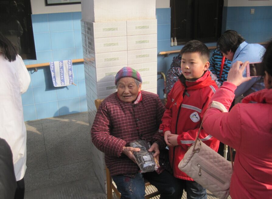 首先,孩子们为老人送上了御寒的手套;接下来,还为老人们捶捶背,和老人聊聊天;最后,还和当天过生日的老人一起庆祝生日。