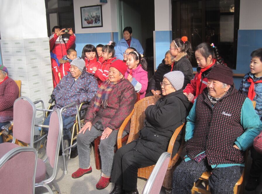 孩子们用自己天真的笑容和真挚的问候,恭祝老人们节日快乐!