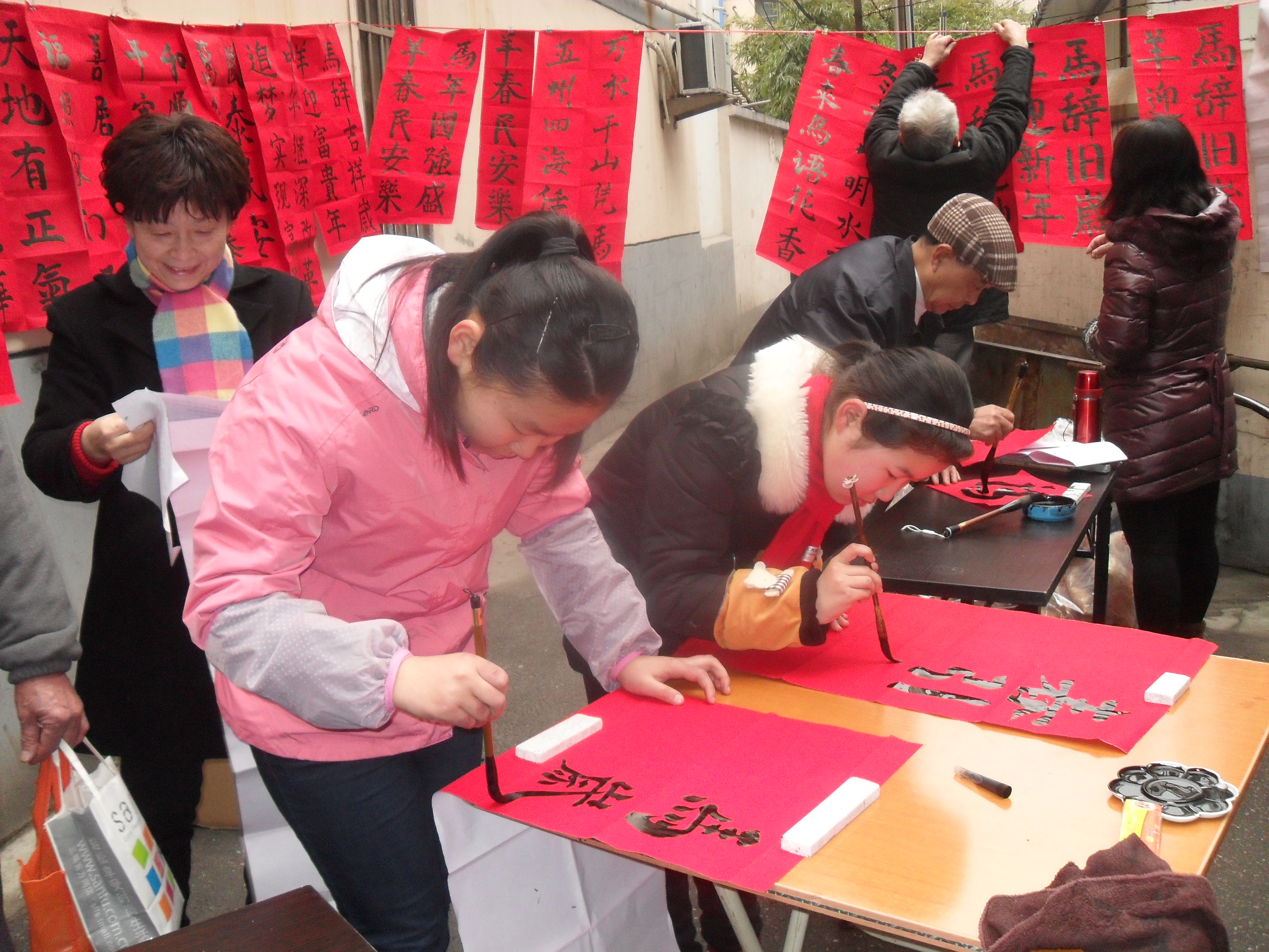 2月16日,莫愁湖街道艺苑社区举办了 “迎羊年、送春联”的广场活动。我社区青少年书法爱好者参加了此次活动”。