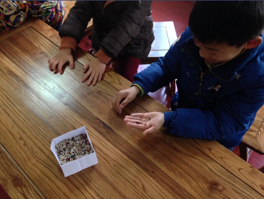 为了给孩子们充分体验一次刚刚过去的“腊八节”的气氛,2月13日上午,莫愁湖街道北圩路社区“百姓学堂”活动室里,举办了一场题为“腊八豆包——重温腊八节”的活动。活动内容是:由辅导老师们精心准备集合了日常生活里所有五谷杂粮豆类,带领孩子们感受植物世界的千奇百态,更体会这些制作腊八粥材料的丰富性,对大自然的感恩,体会在过去人们对祖先的智慧,大自然神灵的敬仰之情,感受腊八施舍馈赠的行善意义,彼此感恩。