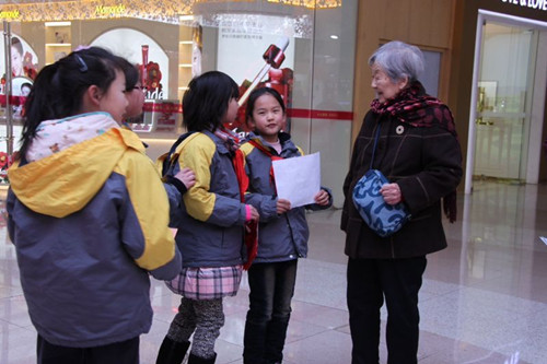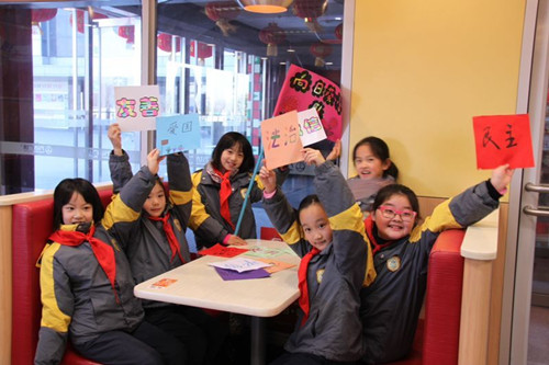 大年初一,正达社区与共建单位金中实小的同学们来到万达广场,共同开展了雏鹰假日小队活动----积极宣传社会主义价值观 传播新春正能量。小队员们每一个人手上都拿有早已做好的社会主义核心价值观内容的纸板。向在万达广场内的爷爷、奶奶、叔叔、阿姨、还有小朋友们宣传了社会主义核心价值观内容,希望通过他们小小的宣传活动,在新春佳节之际传播新春正能量。