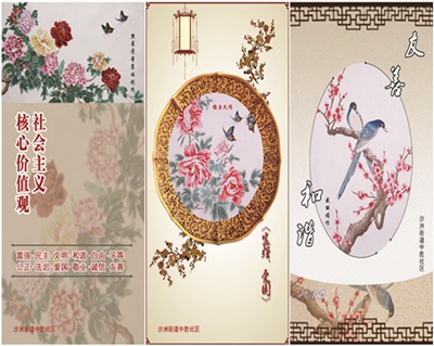 日前,南京市建邺区沙洲街道中胜社区启动“社会主义核心价值观我代言”活动,在社区党员群众中广泛征集书画、剪纸等作品,统一由社区将作品进行拍摄,设计成社会主义核心价值观户外宣传画,在街道、社区、小区宣传栏和道路公共宣传牌上进行统一展示,用党员群众自己的作品为社会主义核心价值观代言,用根植大众的传统文化作品为社会主义核心价值观做宣传,引导更多的居民坚定理想信念、弘扬社会主义核心价值观、传递正能量。