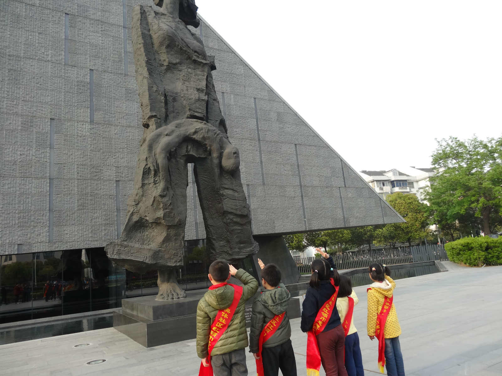 万同胞遇难,奥体社区组织红领巾志愿者到南京大屠杀纪念馆参观悼念南京大屠杀遇难同胞。红领巾志愿者们怀着敬畏的心情认真的抹去雕塑上的灰尘,向遇难同胞敬礼!红领巾志愿者们说:“我们要