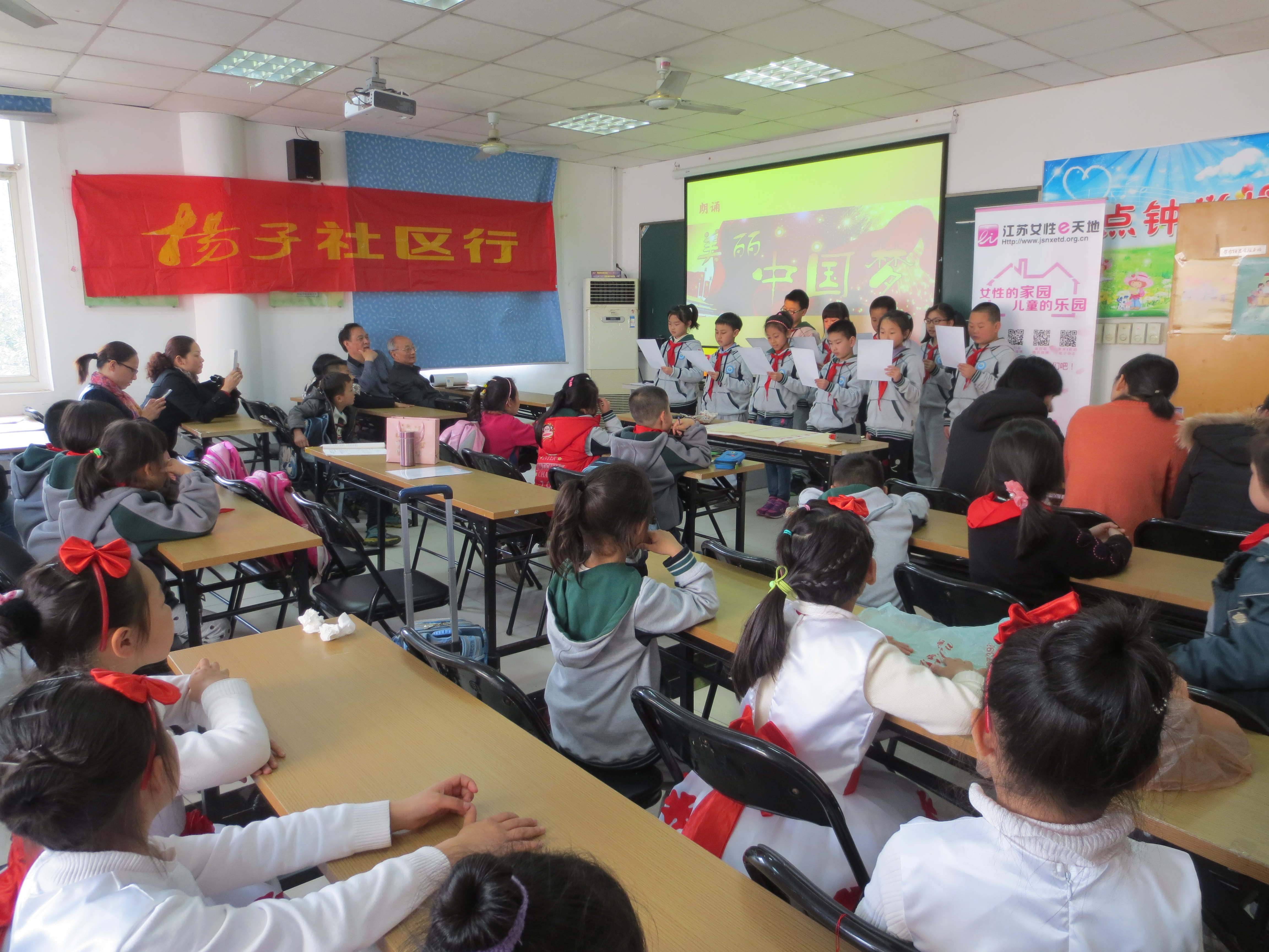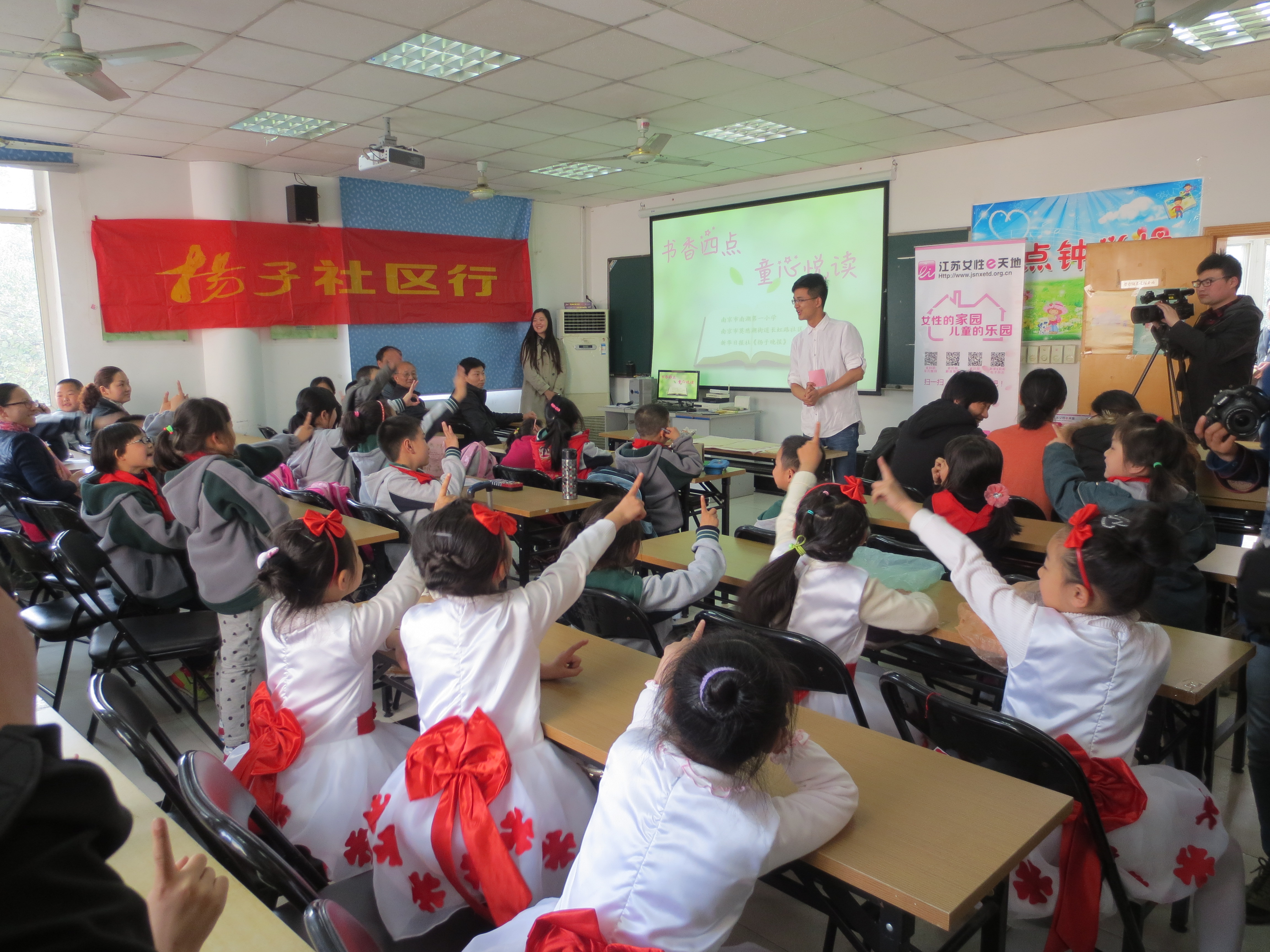 4月20日下午,长虹路社区与南湖一小在社区四点钟学校举办了“书香四点,童心悦读”读书节活动,鼓励小学生多多读书,享受阅读的乐趣,以此来迎接第20个“世界读书日”的到来。本次活动邀请了区关工委陈守一主任和街道关工委樊主任参加,扬子晚报社区行、社区五老志愿者、城市职业学院的志愿者和部分学生家长也一同参加了活动。