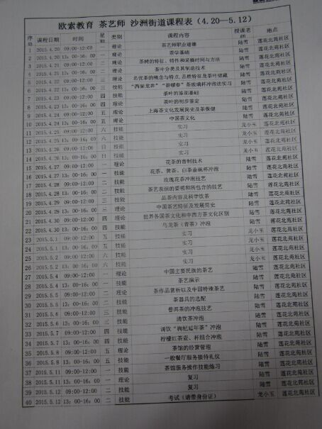 015年4月20日起,莲花北苑社区居民学校茶艺师培训班开课啦。丰富的课程安排不仅吸引失业人员的积极参与,也吸引爱好茶艺的居民前来旁听。通过培训,提高居民技能水平,改善生活品质。