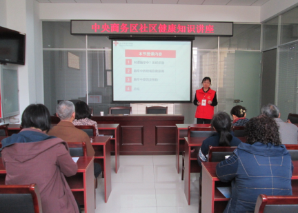 为了普及社区居民的健康知识,向社区居民传递健康的生活理念,4月21日,中央商务区社区邀请建邺区红十字会的工作人员为社区居民开展健康知识讲座。
