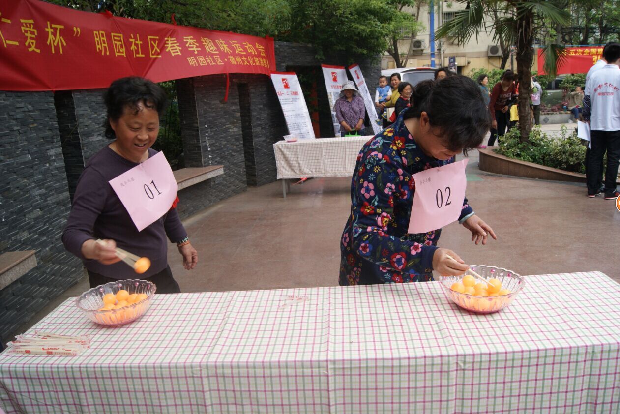 4月29日下午,临近第二十五个“全国助残日”,明园社区关工委联手徽州文化旅游集团在明园社区仁园广场举办“和谐、健康、迎五一,仁爱杯明园社区春季趣味运动会”。运动会共设了夹乒乓球跑、穿针引线、单人踢毽子、抛绣球、心心相应等比赛项目,社区居民积极参与,经过激烈有序的比赛,选手们赛出成绩、赛出友谊、乐在其中。