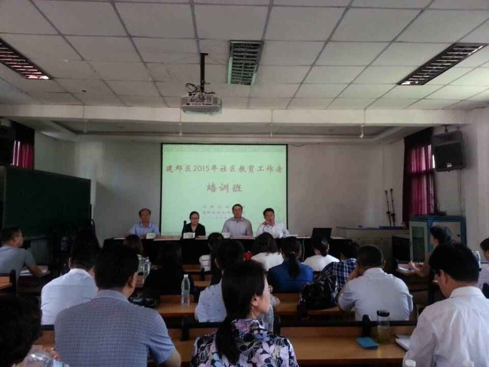5月14日,莫愁湖街道北圩路社区结对共建单位江东门小学朱校长、李副校长和社区教育专干张旸,一起参加了在社区培训学院报告厅内召开的“2015年建邺区社教专干培训”会议。