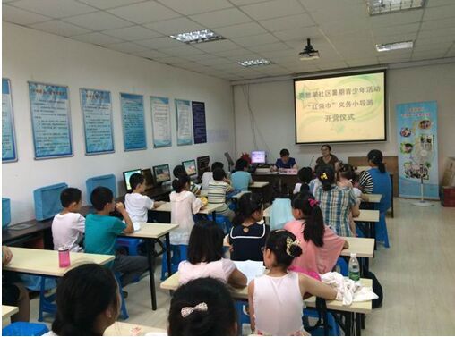 为丰富辖区孩子们的暑假生活,7月15日上午,莫愁湖社区“红领巾”义务小导游暑期活动正式在社区会议室拉开序幕。首先,社区居委会主任毛建萍宣布2015年莫愁湖社区红领巾义务小导游暑期活动正式开始。接着毛主任向参加活动的学生和家长们强调了活动过程中的要组织意识和安全意识。随后,社区关工委“五老”陈娟介绍了今年暑期活动的课程安排。最后,首次参加活动的学生们在开营仪式上自我介绍,彼此熟悉,组建成为一支和谐、团结的社区青少年团队。