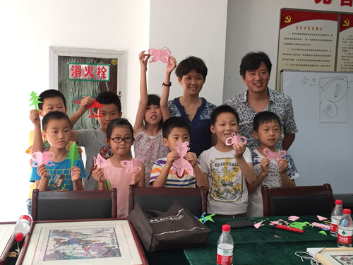 剪纸,又叫刻纸,是一种镂空艺术,是中国汉族最古老的民间艺术之一,保护和传承珍贵的非物质文化遗产是当代人义不容辞的责任,为了让我们的传统文化后继有人,为青少年传承我国优秀的剪纸艺术提供一个展示平台,2015年7月28日下午,乐山路社区组织辖区青少年开展传统工艺学习-剪纸活动,剪纸的载体是纸张,社区准备了五彩的纸张,李老师从纸张的折叠、“开口”“合口”、剪刀的使用开始教,让青少年想想什么是对称的物体,对应着青少年的想象剪出亭子、雪松等,充分调动起青少年的兴趣。对于第一次的学习及动手能力,李老师给与了极大的肯定,青少年们很开心。