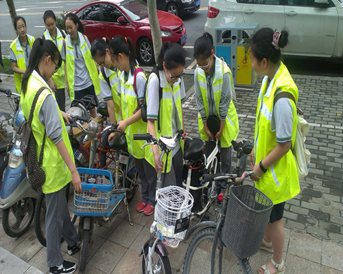 为了使车辆更加干净整齐、自行车排放更加有序、安全管理更加到位,使学生们从小形成良好的意识,中胜社区于7月24日下午组织了一场文明环保——整齐排放车辆活动。参加此次活动的学生约有20余名。活动中,他们身穿黄色文明停车服,整齐统一的服装,认真快速的动作体现了当代学生良好的爱岗敬业精神。通过此次活动,他们都说,停车看起来小事一件,但是很多人不整齐停放,就会造成秩序混乱,影响交通,他们以后定会将车辆停放在该停放的地方,做一个文明人。