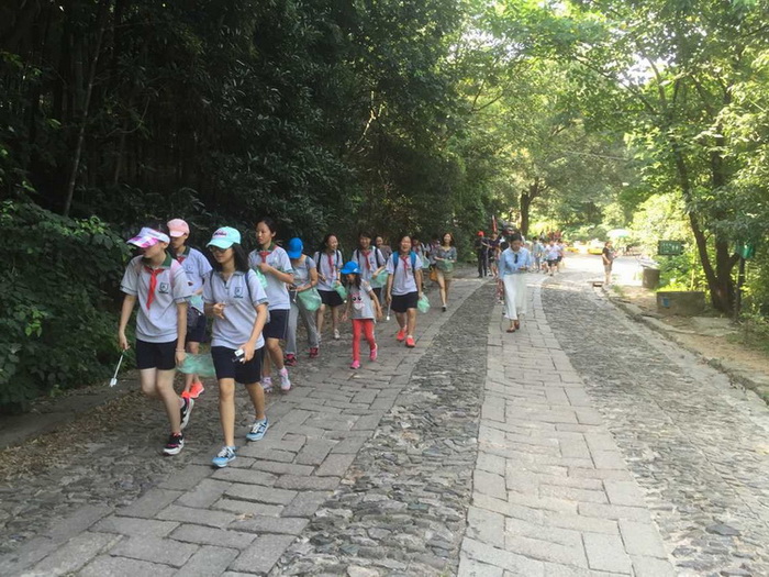 7月31日上午,双和园社区关工委组织社区青少年志愿者与金陵晚报共同开展了“捡起每一片垃圾,让紫金山畅快呼吸,保护虎凤蝶”的环保志愿活动。早上八点钟,社区组织青少年志愿者从社区乘坐大巴出发,到达紫金山后所有人员佩戴由金陵晚报报社统一提供的红色绶带,组队沿紫金山索道入口向盘山公路行走,拣拾道路两旁游人丢弃的垃圾。志愿者们手拿垃圾钳,带上垃圾袋进行仔细地搜索,将游人丢失的餐巾纸、包装袋、香烟头及杂物一一拾起,将它们放入随身携带的袋内,身后留下了一条尽是绿色的登山道。不一会儿,手上的垃圾袋满了,头上的汗珠滴下来了,但没有一位志愿者放缓脚步,而是争先恐后地四处寻觅垃圾的踪影,生怕一时的疏忽而被其他志愿者抢了先。一个小时后,大家顺利到达紫金山天文台,每个人手中的垃圾袋都装得满满的。志愿者们纷纷表示能够为环保贡献一份力量,让“南京绿肺”紫金山畅快呼吸感到无比自豪。