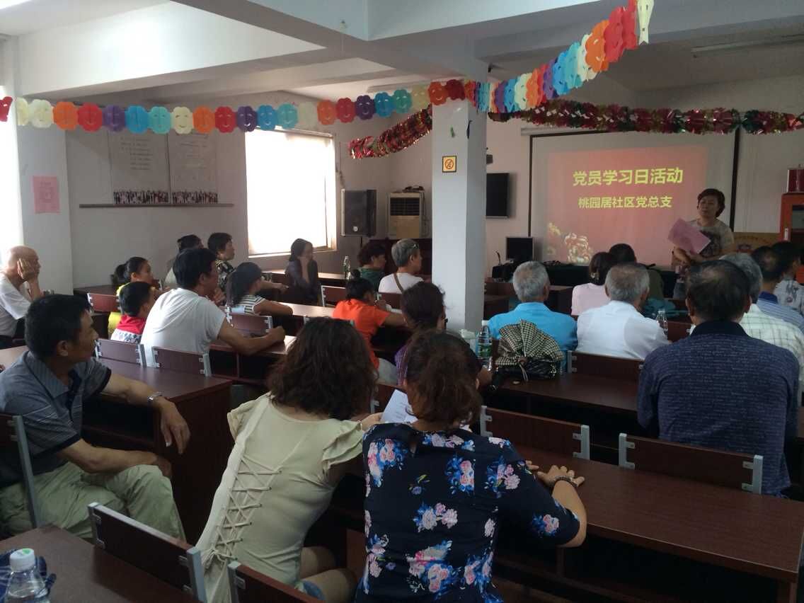 为了丰富社区内青少年的暑期生活,加强青少年的爱国主义,桃园居社区于2015年8月5日,在社区二楼会议室开展我与党员一同学习的活动。社区内的小朋友和老党员齐坐一堂,观看专题纪录片,了解中国共产党的发展历史,听身边的老党员诉说往昔。这次活动通过老党员的言传身教,让小小少先队员们学到了许多课堂以外的知识。