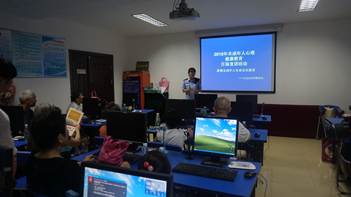 今天上午,正达社区在二楼电子阅览室开展了2015年青少年暑期活动之未成年人心理健康教育讲座。活动现场,社区民警荣警官通过小游戏方式向青少年和青少年家长们讲解了暑期青少年在家自我安全已经如何防止网络成瘾等健康教育知识。此次讲座得到了家长们的一致好评,觉得此次活动对预防暑期青少年生命安全等以及心理问题有积极促进作用。
