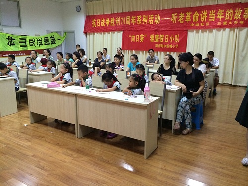 为纪念抗日战争胜利70周年,让社区更多的青少年学生勿忘历史,爱国团结。中城社区于8月17日上午,再次组织了“纪念抗战胜利70周年听老革命讲红色故事”活动。社区再次邀请了曾参加渡江战役和淮海战役的老革命赵铜老先生,曾参加过抗日战争并且是白求恩部下的老革命朱丹老先生等,为青少年学生们讲述革命年代的故事。